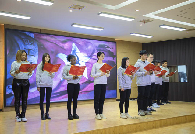 华中师范大学政治与国际关系学院学生代表们身着印有“我爱中国”字样的白色文化衬衫深情朗诵《青春中国》以表达对中国的深厚情感,也表达出作为国际青年对青春的赞美和对国际交流做出贡献的渴望。