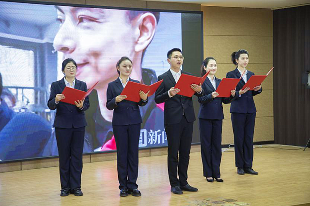 社区下沉党员代表、两新组织党员代表、业委会代表和社区工作者代表朗诵《我的青春正当红》,倡导全体党员向英勇救人的“快递小哥”张裕同志学习,做建设卓越城区践行者。张裕不惧危险、挺身而出的英雄气概,不图名利、至真至纯的崇高情怀,彰显了担当作为的党员本色。