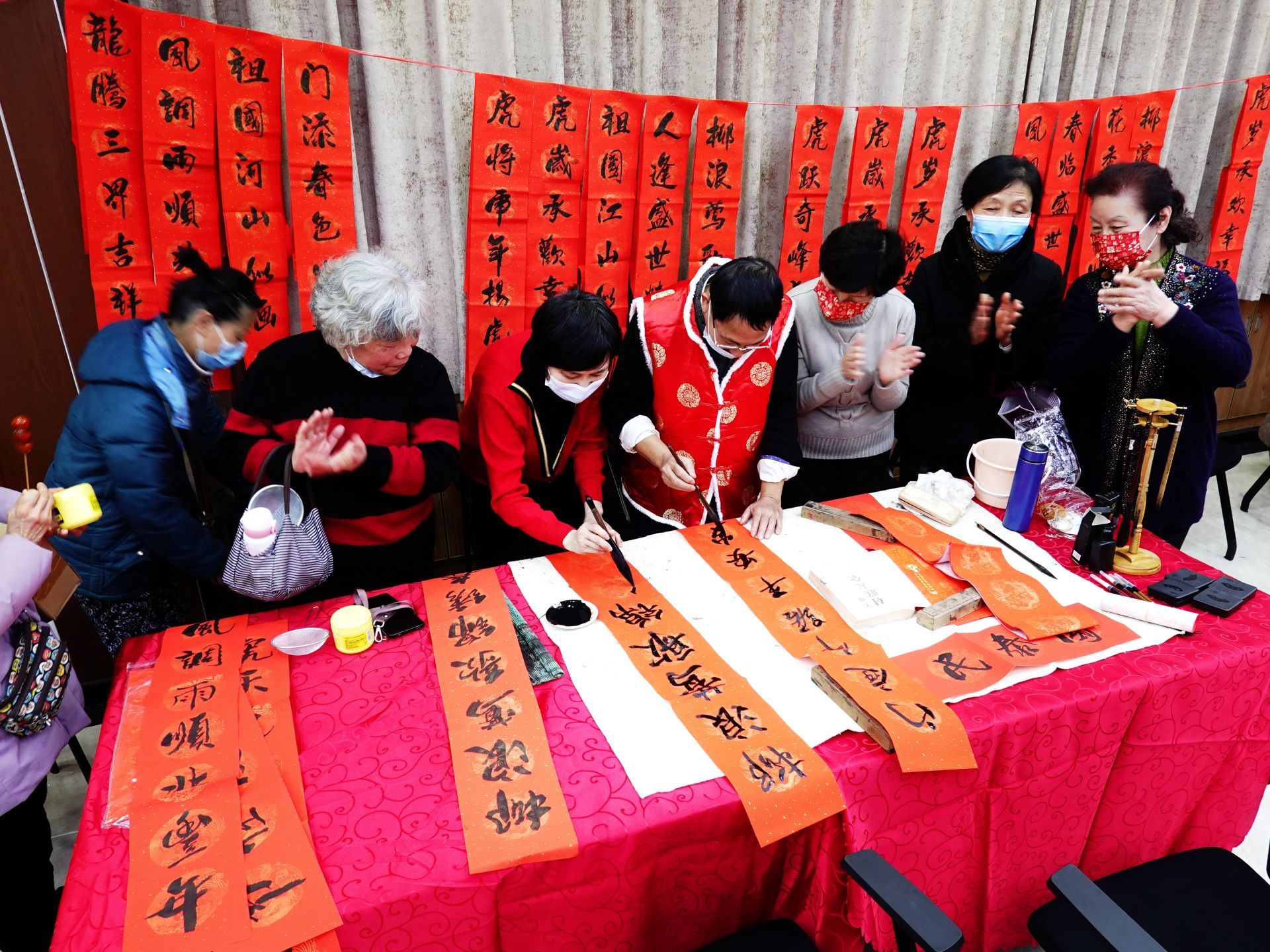 现场为居民设计了非遗民俗体验,写春联、送祝福、品尝糖葫芦及互动游戏!活动结束后,社区党委书记李凤强与社区网格员、社工、志愿者一起到高龄老人家中,为他们送去腊八粥和春联,提醒他们寒冷天气注意保暖,注意用电用火安全。