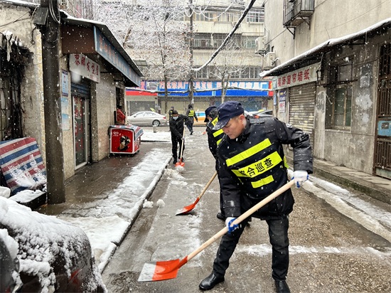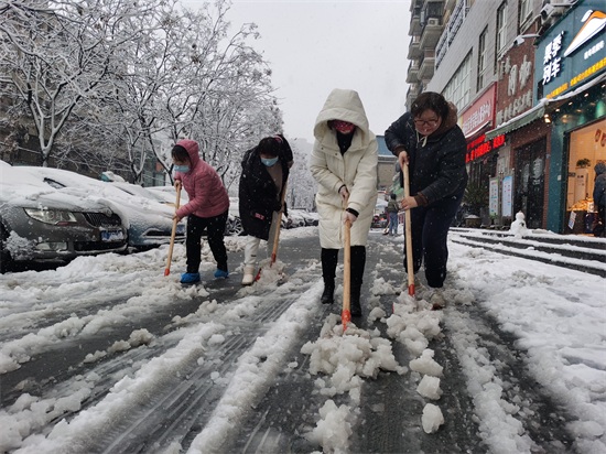 顶着凛冽的寒风,所有人员积极投身到扫雪队伍中。大家挥舞着铁锹和扫帚对辖区内主干道路、小区进出口的积雪进行清扫。大家不畏严寒、团结协作,配合默契,有的铲、有的推、有的扫,干的热火朝天,忙碌的身影在皑皑白雪中构成了一道亮丽的风景线。虽然室外温度低,但大家劳动的热情和团结的力量让这个冬日变得格外温暖。