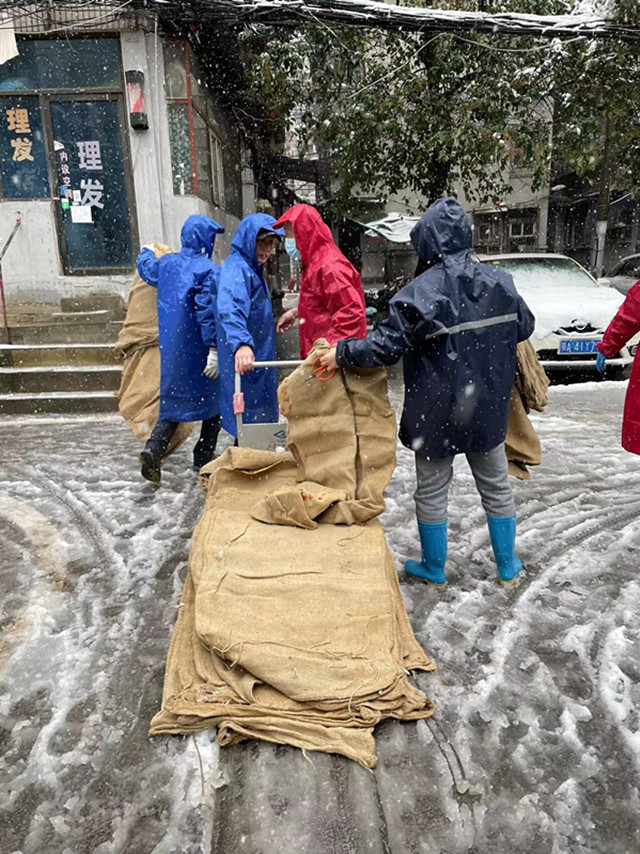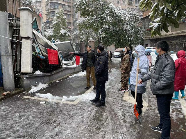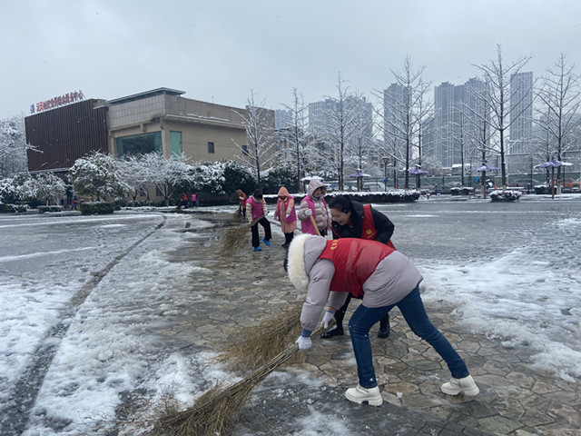 7日上午9时,万松街道领导班子带领机关工作人员、社区群干、环卫工人、下沉党员及志愿者等430余人,对辖区主要道路、人行道、居民区出入口、公交站台等重点地段进行铲雪除冰。他们身着红马甲,齐心协力利用铁锹、扫帚等工具破冰、铲冰,清扫路面台阶,清理被压弯、压断的树枝,并对危房进行安全巡查,提醒辖区居民注意安全,做好防范措施。尽管泥水已将鞋子浸透,可他们全然不顾,劳动热情丝毫不减,始终发挥不怕脏、不怕累的志愿精神,在密切配合中扫出了一条条干净畅通的大道,方便了车辆和行人出行,确保了辖区雪天道路畅通。