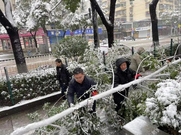 风雪无情,社区有情,上班第一天,常四社区迅即组织社区工作者,投入到积雪清理工作当中,尽管室外寒风凛冽,但大家热情高涨,有的忙着铲除路面积雪,有的爬高上低忙着抖落树上的积雪,有的清理路面被积雪压断的树枝,辛勤的劳作给居民提供了出行的便利。