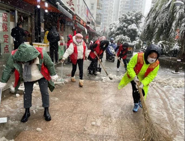 飞雪迎冬奥,武汉下了新年的第一场雪,为保障辖区居民的正常出行,水仙里社区工作人员迅速开展扫雪融雪工作,在这寒冷雪天,用实际行动践初心、暖民心。