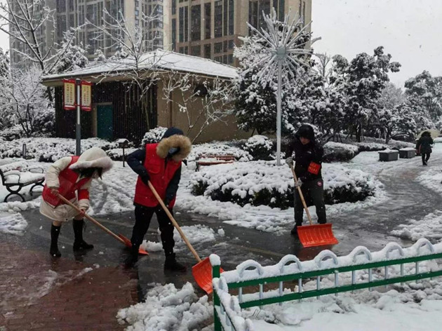 和祥里社区组织社区工作者、热心居民群众和志愿者与时间赛跑,与飞雪争锋。大家在社区的组织下,分工配合、团结协作,有人铲雪,有人除冰,有人铺麻袋,有人撒盐防滑……凛冽寒风中,大家忙碌的身影在皑皑白雪中形成一道亮丽的风景线,热情和团结的精神让这个冬日显得格外的温暖。