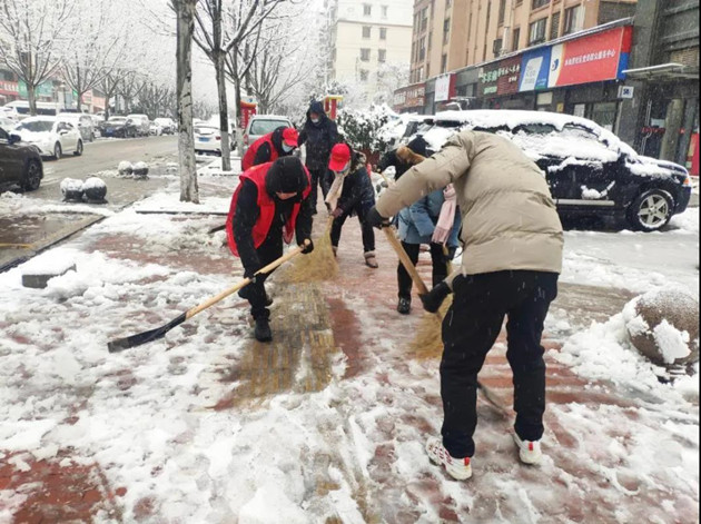 大雪过后的“桃林人”积极弘扬“奉献、友爱、互助、进步”的志愿者精神,清扫积雪我当先,在大家共同努力下,一条条便民爱心小路遍布辖区各个小区、各个楼栋。