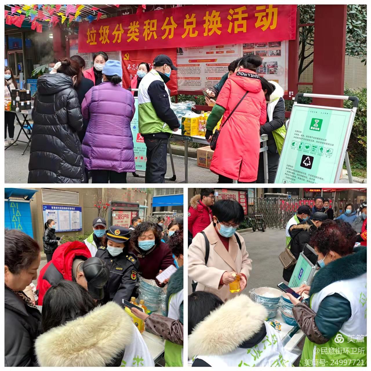 2月15日,民意街道垃圾分类专班在民意街道多闻社区崇安鑫城小区开展了“垃圾分类积分兑换活动”。民意街道公共管理办公室、民意街环卫所以及多闻社区下沉党员志愿者多方联动共同推进垃圾分类的工作。向现场居民普及垃圾分类知识、兑换积分礼物。此次活动,有助于提高居民垃圾分类意识,进一步推进社区垃圾分类工作,充分调动居民参与垃圾分类的积极性。