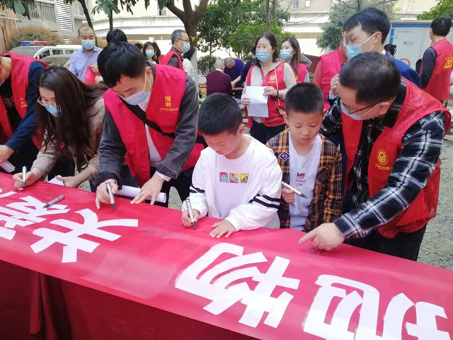 在活动现场,伴随着禁止高空抛物宣传小喇叭响起,社区发起了“拒绝高空抛物、关爱他人、尊重生命”签名活动,有的上门向居民发放带有法律条文和案例的严禁高空抛物宣传单,在场的律师和公安民警解读有关高空抛物法律条款和真实案例,有的忙着在每一栋楼的单元门楼道摆放警示性宣传牌,有的在小区业主群发起“拒绝高空抛物、从我做起”接龙活动。