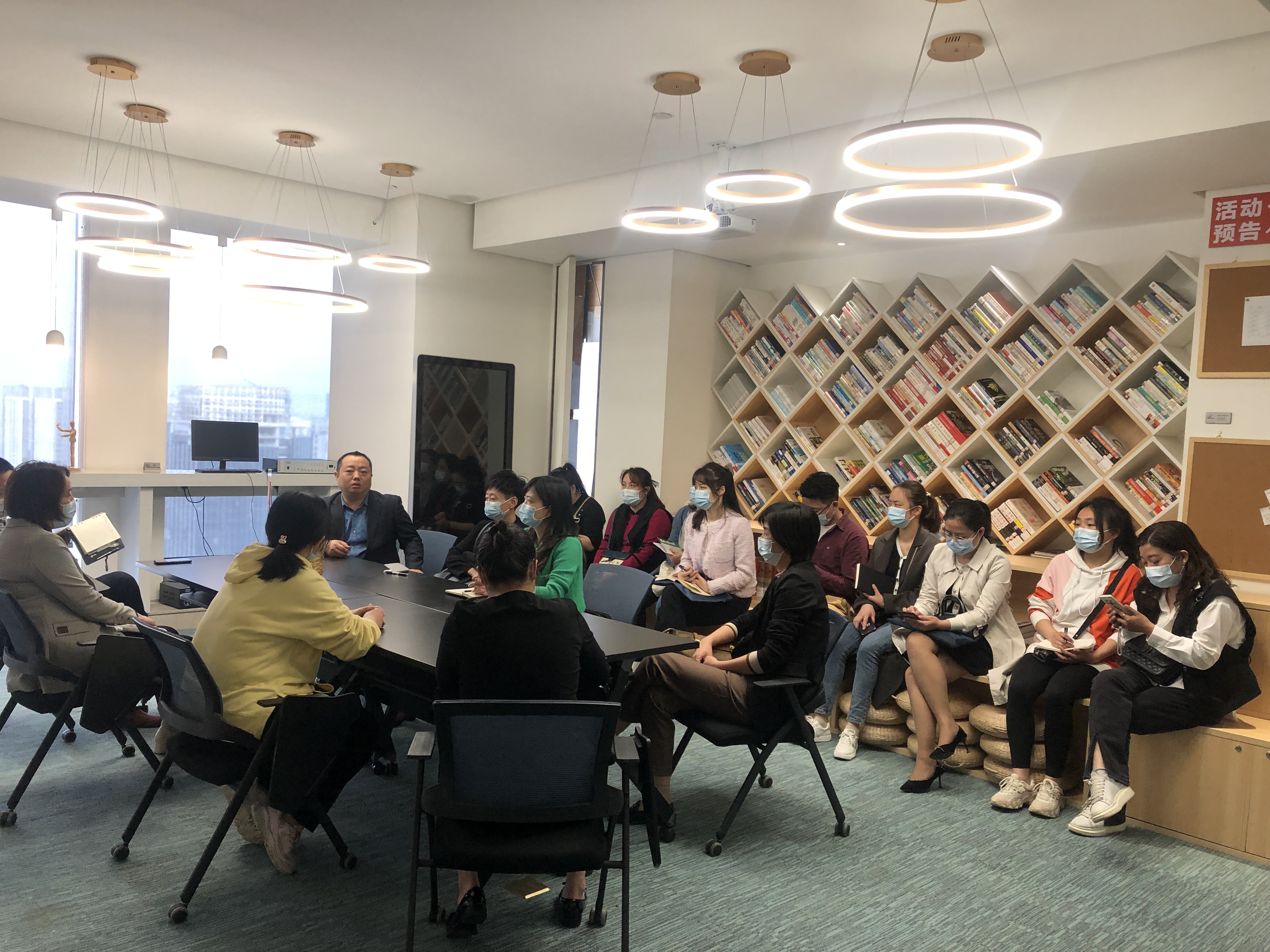 4月6日下午,新华街道工委副书记郑敏、党建办全体工作人员和8个社区书记到北湖街道广发银行大厦江城红领驿站、金融街金融发展集聚区及和风里社区红色物业服务中心参观学习。