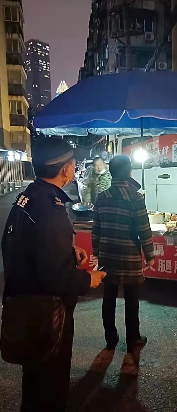 巡查队员对夜间流动摊贩、占道施工进行劝阻,加大重点时间段的整治力度,解决环境秩序问题,保障辖区安全。