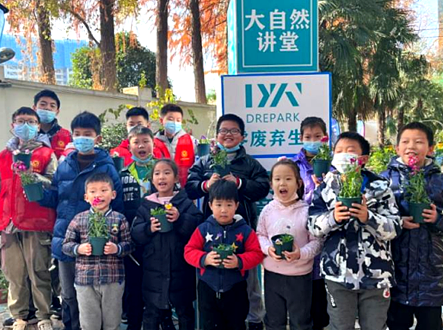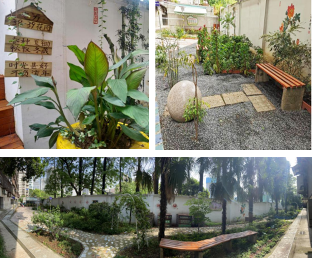 队员们还充分发挥聪明才智,巧妙废物利用:捡来破裂地砖铺成五彩步道;废弃电缆沟盖板搭建成休息椅凳;清理石头堆积起来,缠上铁丝,种上藤蔓攀爬植物,成为园林景观;旧轮胎刷上彩色油漆,种上各色花卉,别是一番美丽;自制雨水收集器,为花园灌溉提供了纯天然水源……一件件匠心独具的创造,向居民们展示着循环利用的神奇魅力。通过厨余堆肥和废物利用,志愿队不断向居民宣传垃圾减量分类和资源回收利用理念。