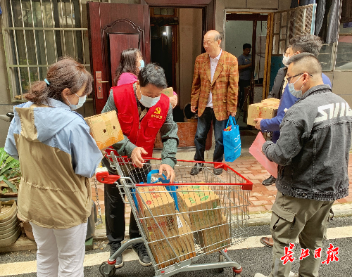 4月29日,江汉区开展首场关爱帮扶“文明实践日”活动。在新华街道循礼社区,“感动江汉”人物刘海艳、社区工作者以及电建地产南国置业泛悦南国中心项目工作人员,把一箱箱米面、鸡蛋、橙子等爱心物资送到了关爱帮扶对象家中。