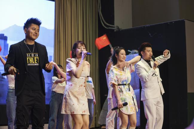随后,青年代表表演大合唱《少年》。动情的歌声、热烈的气氛,引得现场观众挥动国旗也加入进来,将活动的气氛推向高潮。