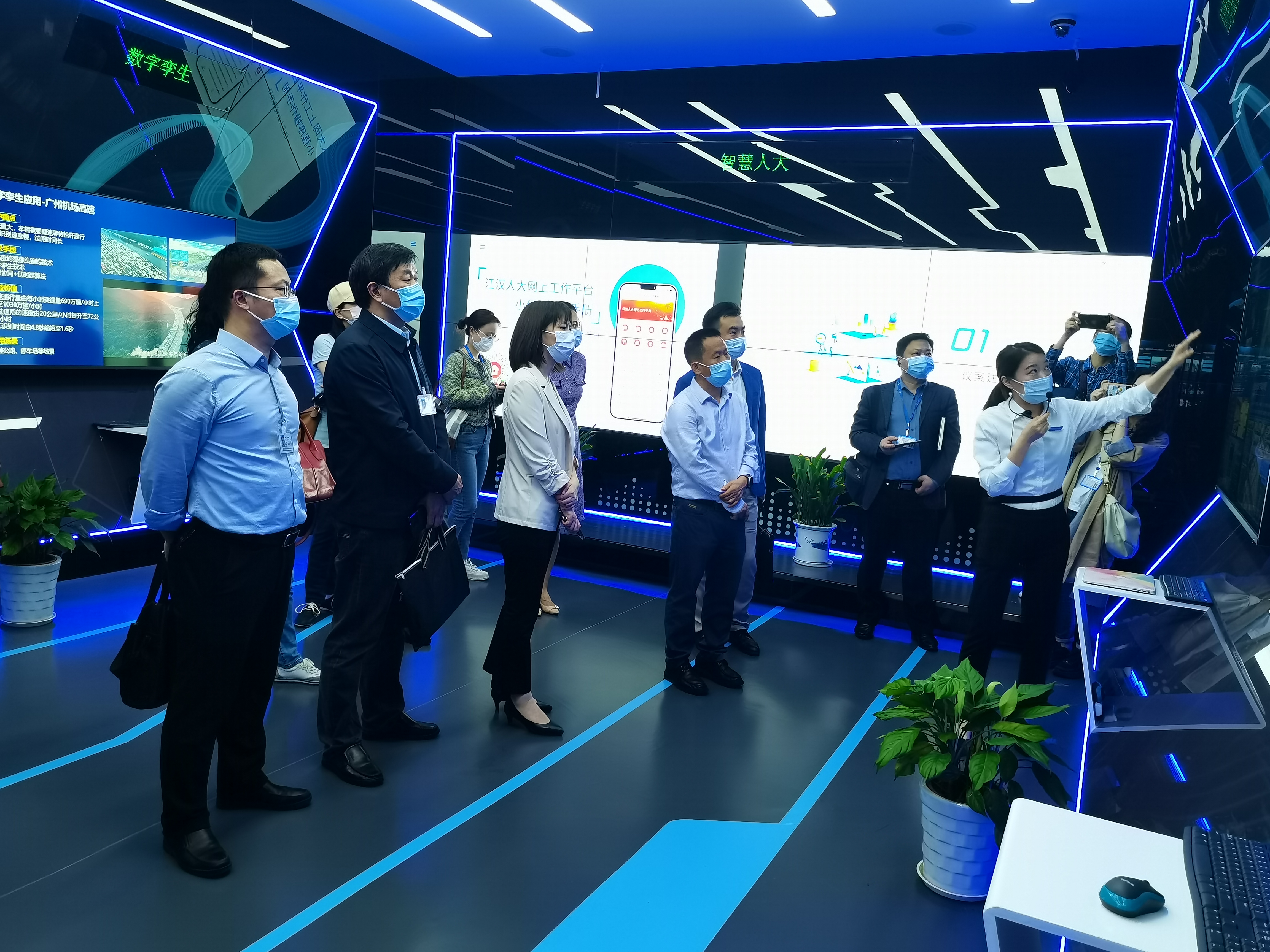 调研组一行来到深交所湖北资本市场培育基地,认真听取有关负责人关于基地(园区)建设、招商引资成果、未来发展等情况介绍。据了解,深交所湖北资本市场培育基地立足江汉、服务湖北、辐射华中,聚集优质资源、聚焦重点对象、定制个性服务,构建“六位一体”湖北创新金融生态圈,是打造武汉“一街一城”金融新高地的关键角色和重要环节。第二站来到湖北公众信息产业公司中国电信5G产业中心观摩了湖北公众信息展厅、奇翼果物联网开放实验室、中国电信要客灾备中心,详细介绍了“5G+云+AI”、信创安全、智慧人大、智慧社区、网联网云平台等多个平台情况。其中“智慧人大”是江汉区人大主动顺应“互联网+”发展趋势,委托湖北公众信息产业公司全力打造的人大代表履职平台,进一步提升人大履职能力,创新驱动人大工作。