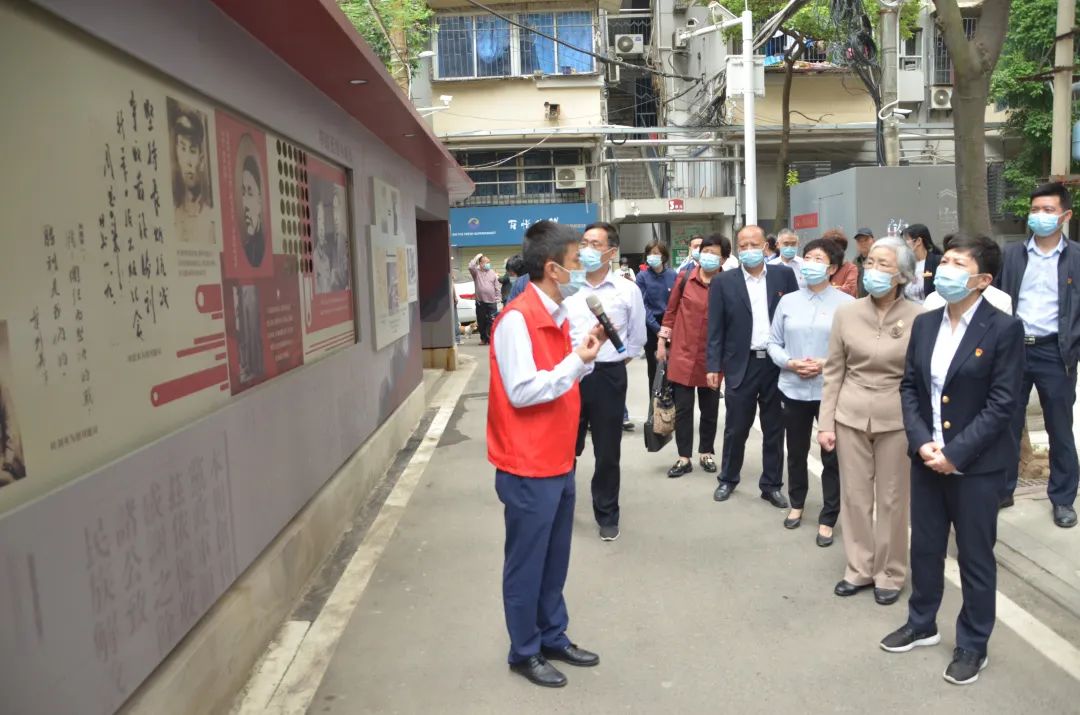 5月12日上午,市委老干部局、江岸区、硚口区、汉阳区相关负责人及老干部代表一行,来到武汉市“老干部红色教育十佳地标”之一的江汉区民意街道《新华日报》社旧址,同江汉区委组织部、区委老干部局、江汉区民意街道相关人员共同开展“我在红色地标讲党课”活动。活动现场全程直播,江汉区54个离退休干部党支部和6000多名离退休干部同步在线收看。在全国抗击新冠肺炎疫情先进个人、多闻社区党委书记、居委会主任田霖的介绍下,参观了《新华日报》社旧址,重温那段峥嵘革命岁月,从党的光辉历程汲取前行力量。同时,现场参观民意街多闻社区“老党员之家”,了解功能设置、活动开展、作用发挥等情况,对社区老干部、老党员主动融入城市基层治理,在疫情防控、调解纠纷、老旧小区改造、拆除违规搭建等方面积极发挥作用给予充分肯定。在“老党员之家”二楼活动室,全体党员开展了主题党日活动。区政协原主席、区直机关离退休党总支书记陈剑华带领党员重温入党誓词。区人大原副主任胡赶美以《传承红色基因,奋进时代征程》为主题,从《新华日报》诞生的时代背景、报社在汉期间的主要工作、报社旧址给人的启示等三个方面,深度讲解《新华日报》革命旧址,为大家上了一堂生动党课。结合“党建+志愿服务”,江汉区组建了“红色地标银星领讲”志愿服务队,活动现场举办授旗、授牌仪式,鼓励全体队员立足红色地标、广泛开展宣讲,吸引带动更多老同志加入志愿服务领域,建强全市“银发初心”志愿服务品牌。民意街道青年党员代表章琼表示要传承革命精神,赓续红色血脉,立足本职岗位,主动奋发作为,为服务社区居民作出贡献。