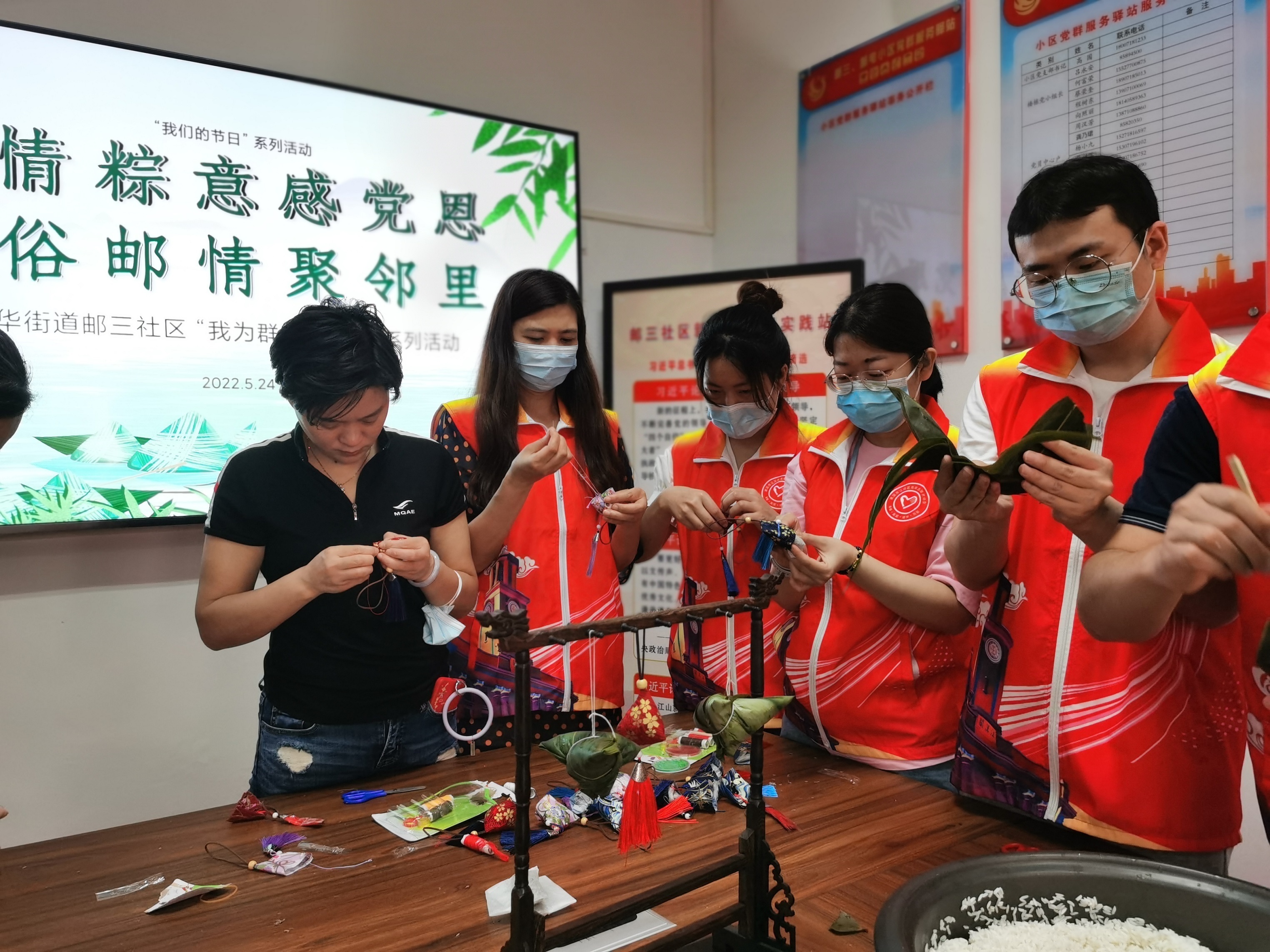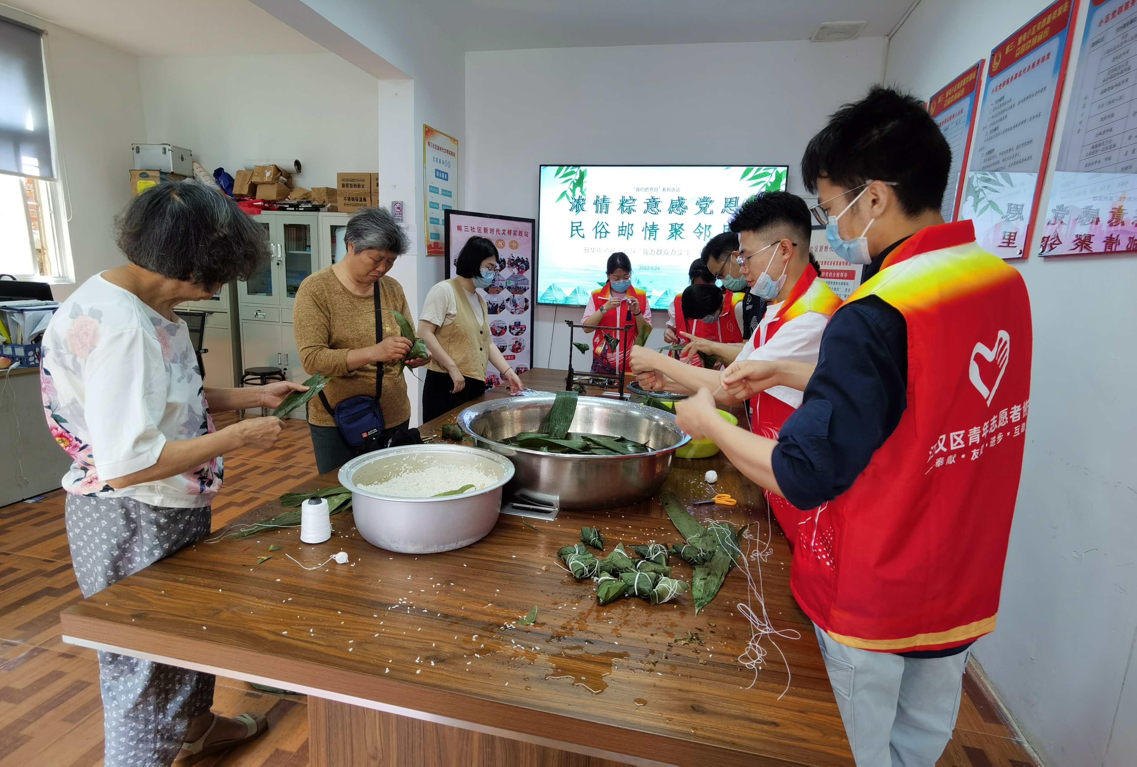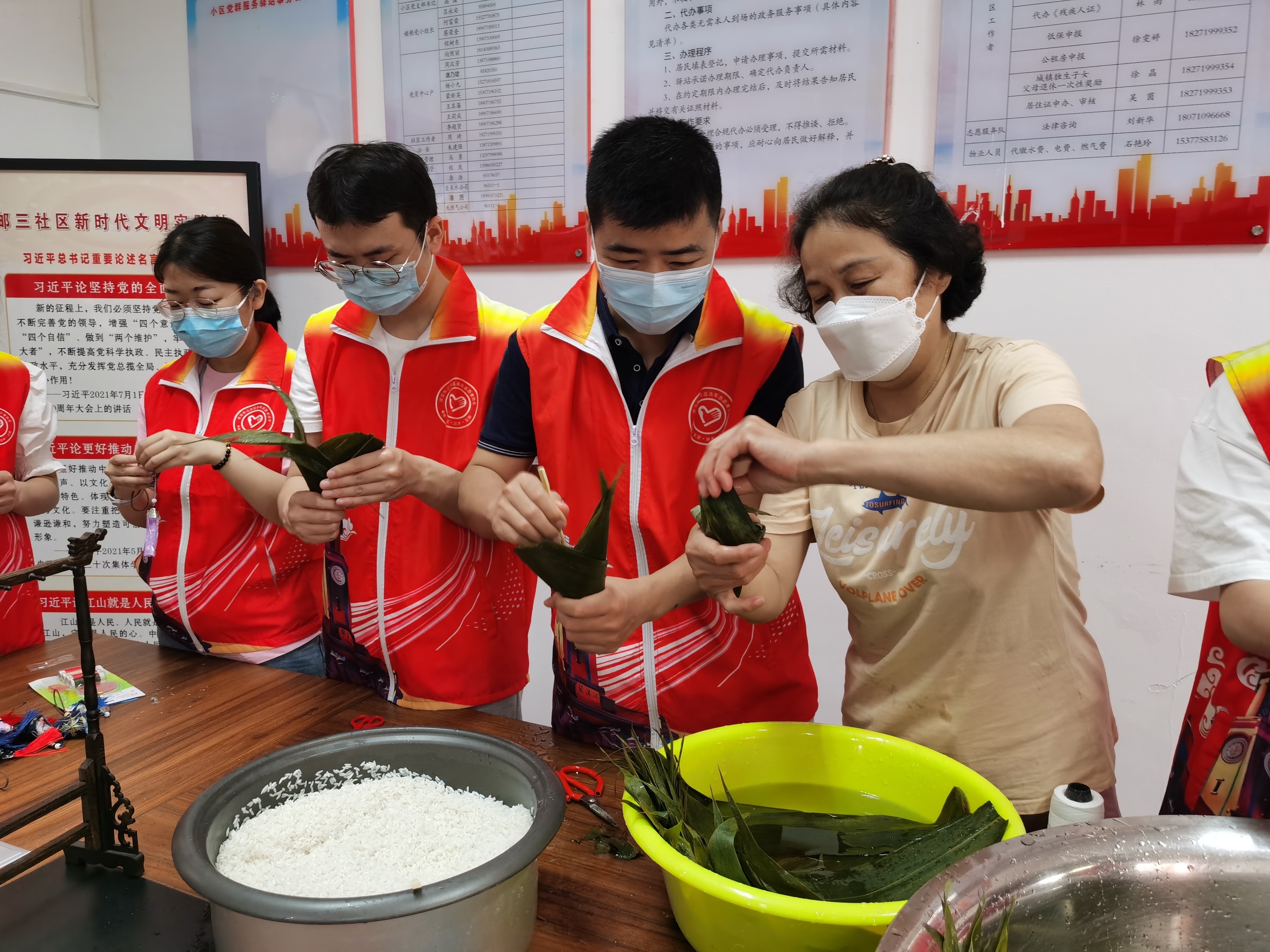 在端午佳节来临之际,新华街道邮三社区党委充分发挥服务群众,凝聚人心的作用,以党建为引领,结合邮三社区作为老旧小区的具体情况,在江汉区青年志愿者协会的大力支持下,动员社区包粽达人、书法达人等积极参与,开展了端午特色文化活动。
