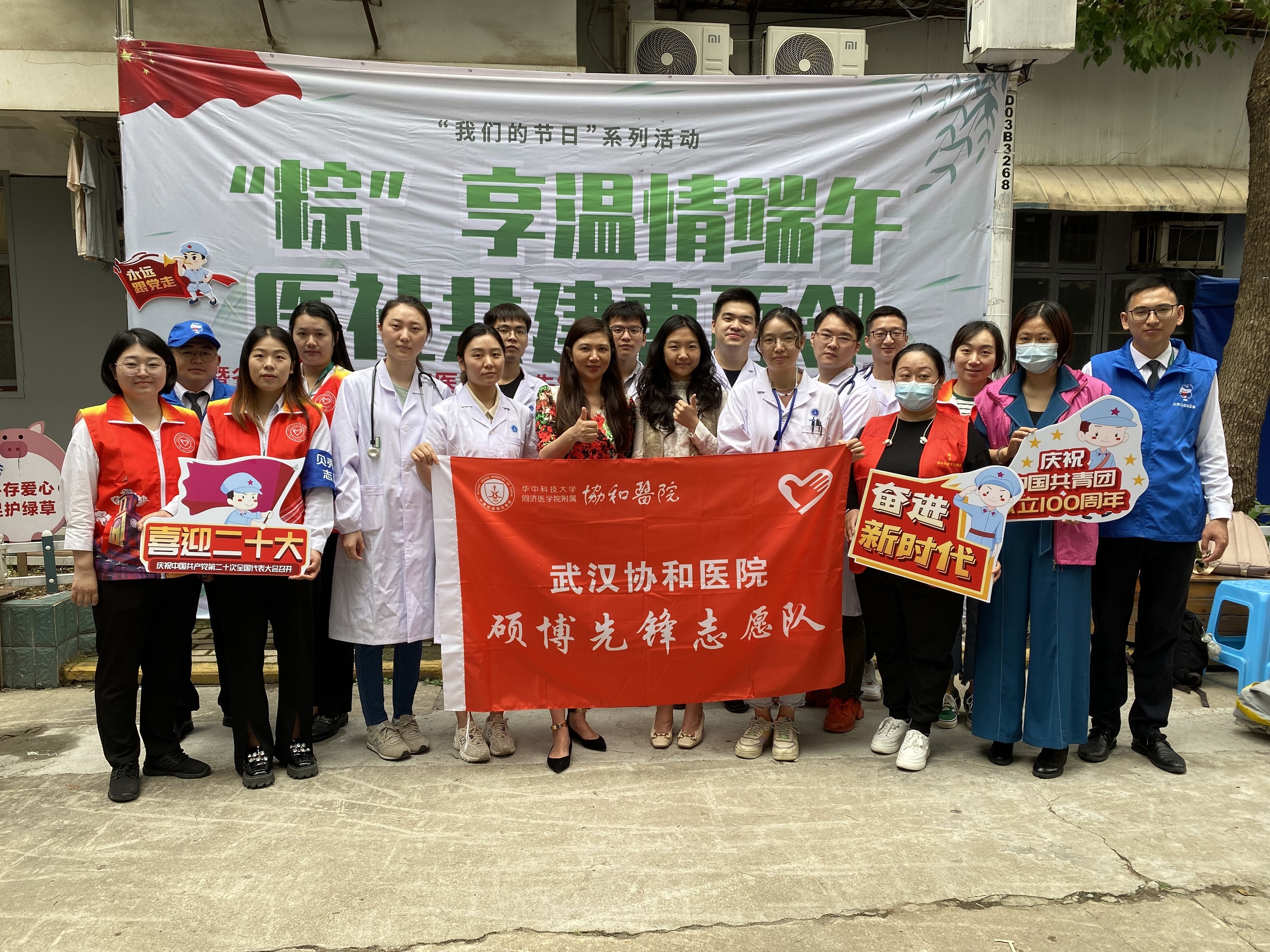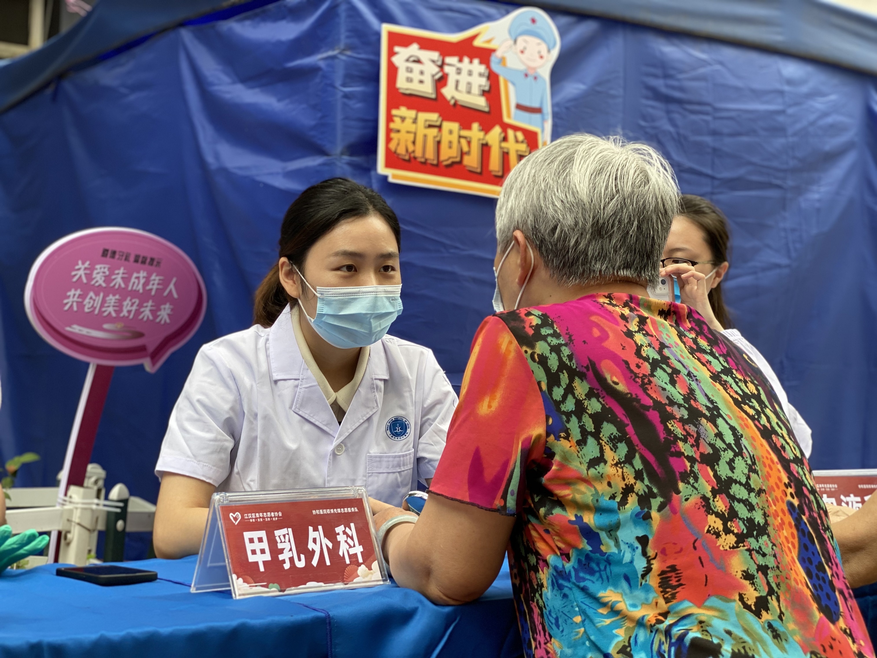 在5月27日上午,来自江汉区青年志愿者协会的“协和医院硕博先锋志愿服务队”走进社区,6个科室的硕博医学生代表为群众现场问诊咨询,解决群众的健康医疗疑惑问题,用实际行动,践行了当初的学医誓言,染红了青春。青年医生们细心地为居民们测量血压、血糖等,向社区居民宣教卫生保健知识、饮食安全、合理用药等方面的知识,发放健康宣传资料,青年志愿者们为向前来问诊的居民提供引导、搀扶等暖心服务。