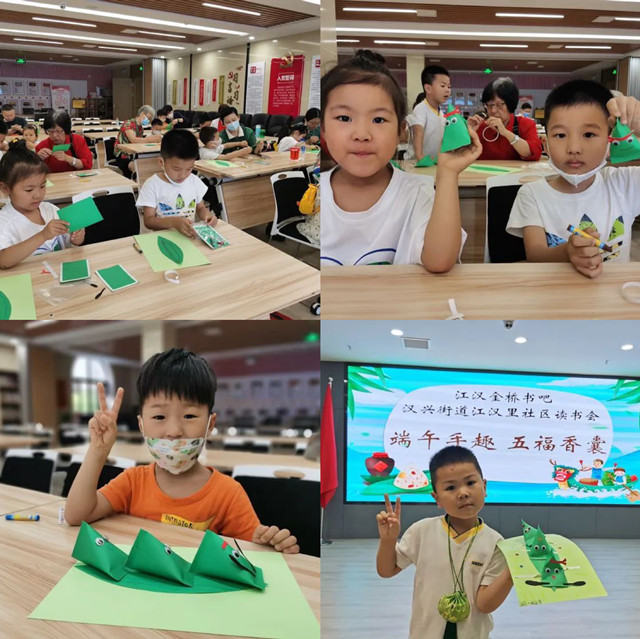 “五月五,是端阳;插艾叶,戴香囊;吃粽子,撒白糖。龙船下水喜洋洋。”5月27日下午,为了弘扬传统节日文化,丰富辖区居民精神文化生活,传承优秀文化习俗,在端午节来临前,汉兴街道江汉里社区开展'端午手趣 五福香囊"活动,江汉区图书馆为社区的居民小朋友们精心准备了"非遗"文化大餐。
