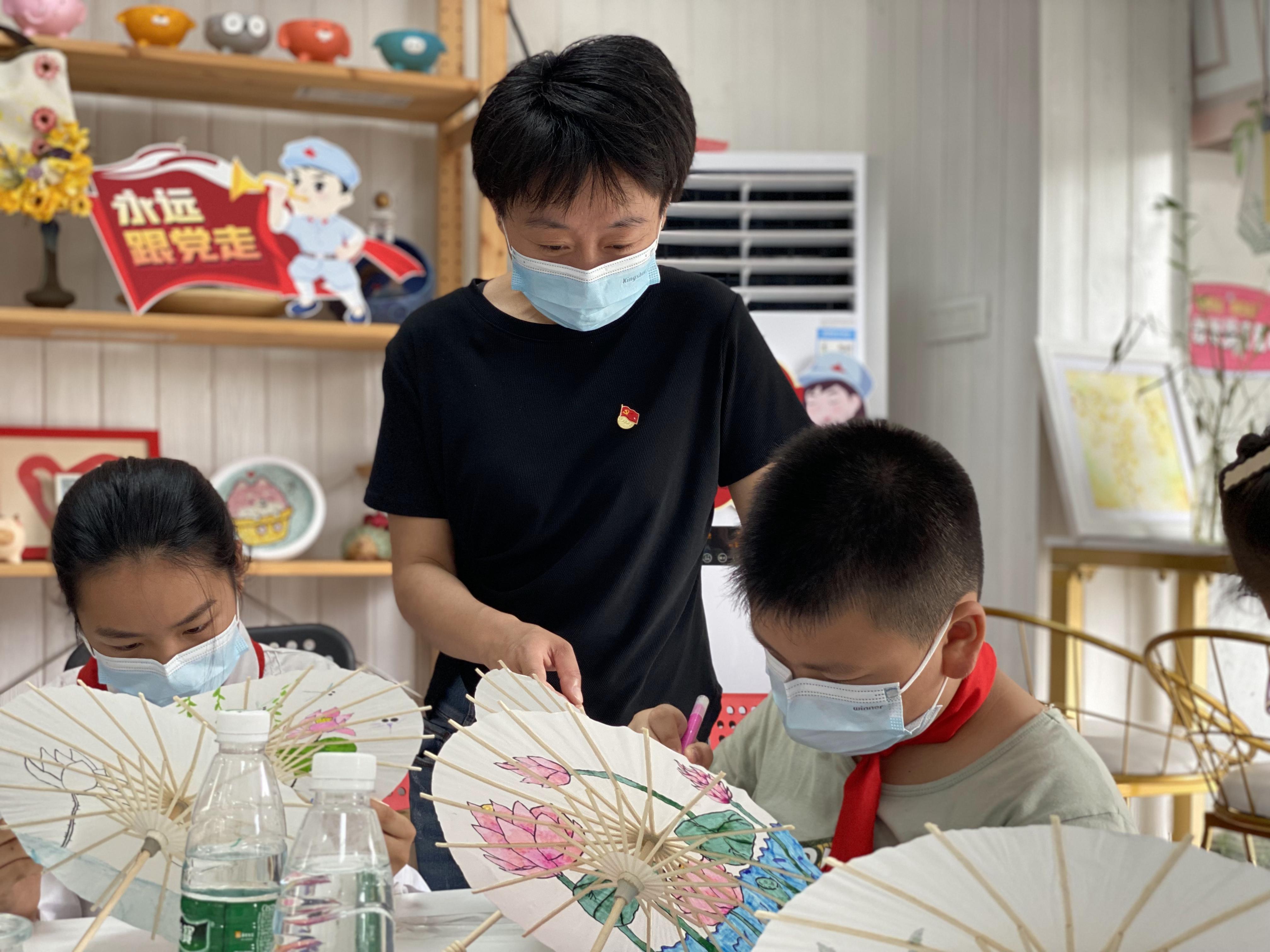 来自社区共建单位取水楼小学师生代表,开展了“端午童心画‘莲’洁”活动,由师生同绘的形式用不同材质的画笔勾画出莲花伞,让孩子们在学习和享受美术创作魅力的同时,感悟“莲”出淤泥而不染,濯清涟而不妖的廉洁品格,达到“清”育美德,以“廉”润童心的目的。