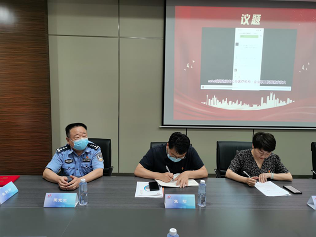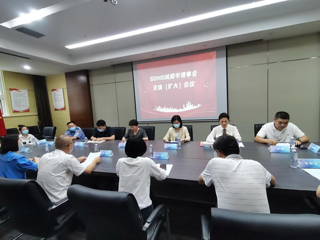 揭牌后,SOHO城楼宇理事会暨楼宇理事会全体第一次(扩大)会议成功召开。楼宇理事会理事成员、辖区民警等参会。