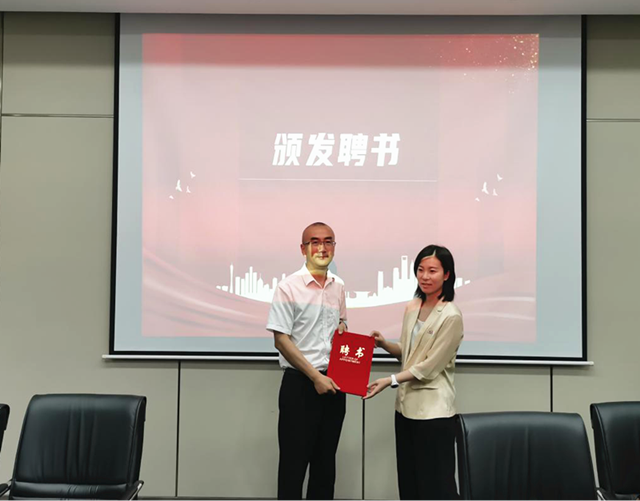 万松街道党工委副书记康娜为各理事会成员颁发聘书