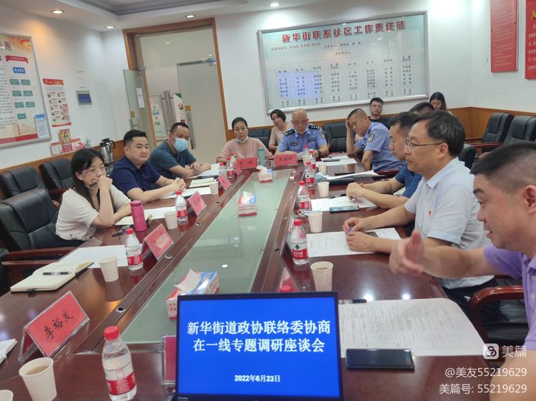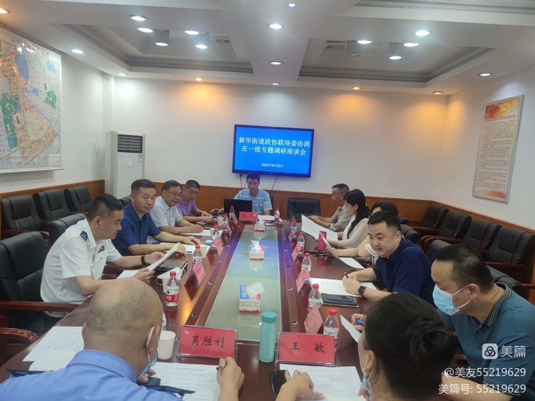 6月23日,新华街道办事处召开“新华街道政协联络委协商在一线专题调研座谈会”,区政协秘书长李治俭,协和医院院长季湘年,区交通大队大队长郑汉斌,协和保卫处处长程辉,新华街道党工委书记胡丽华,办事处主任姬林等出席座谈会。