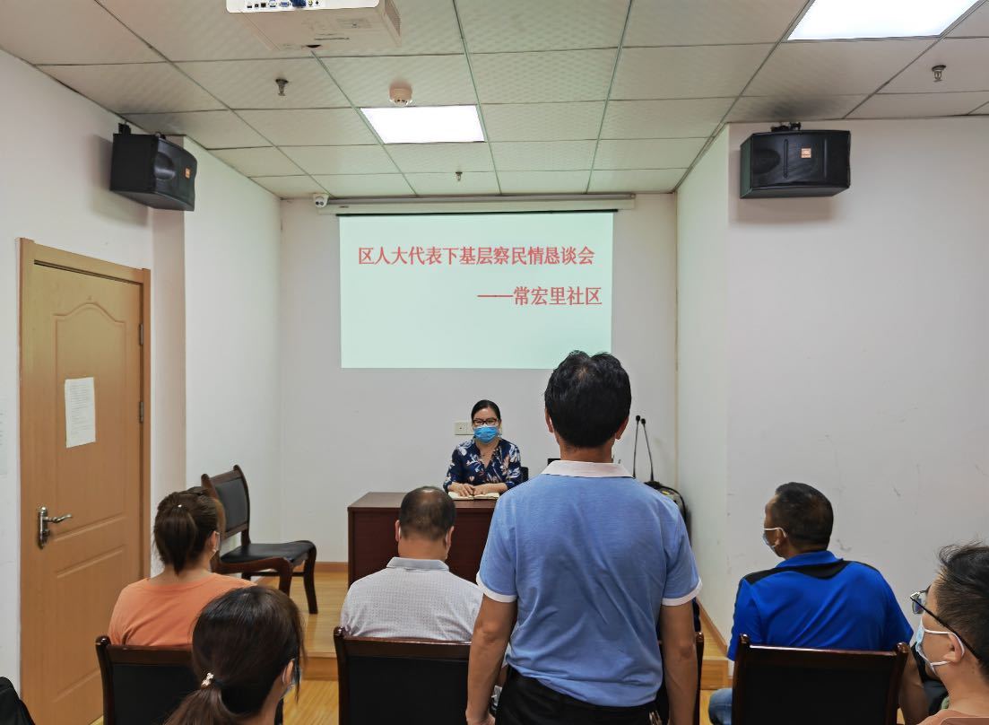 为进一步加强人大代表与选民群众的联系,收集社情民意,6月20日,江汉区人大代表田伟、廖思玮在常宏里社区举办“下基层、察民情”恳谈会,面对面听取选民意见和心声。