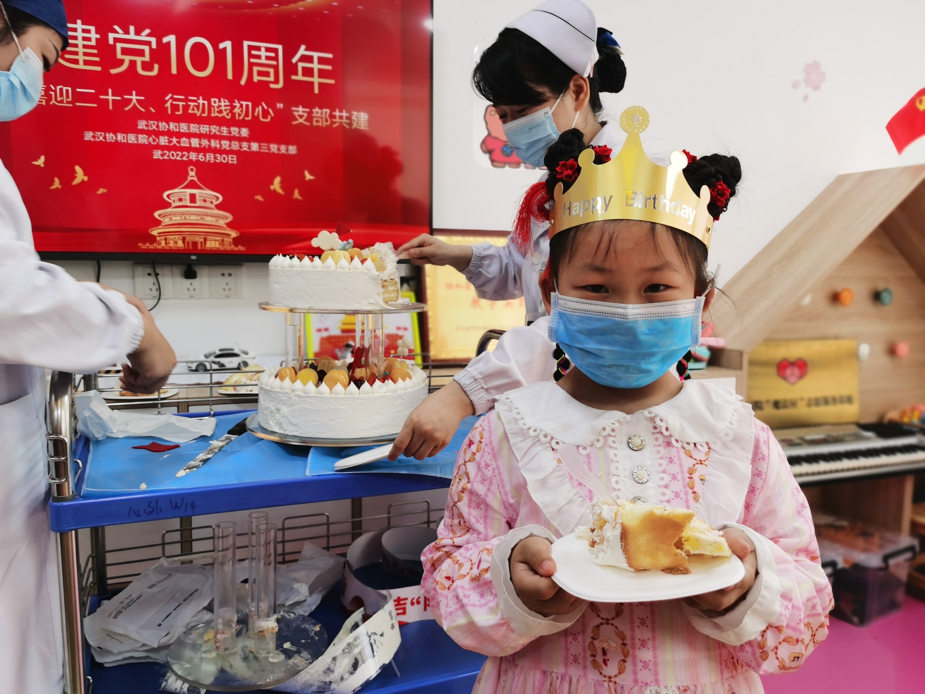 “祝你生日快乐,祝你生日快乐......”6月30日下午,武汉协和医院心外科爱佑亲子乐园活动室传来阵阵欢笑声,一场特别的庆“七一”主题活动正在进行中。