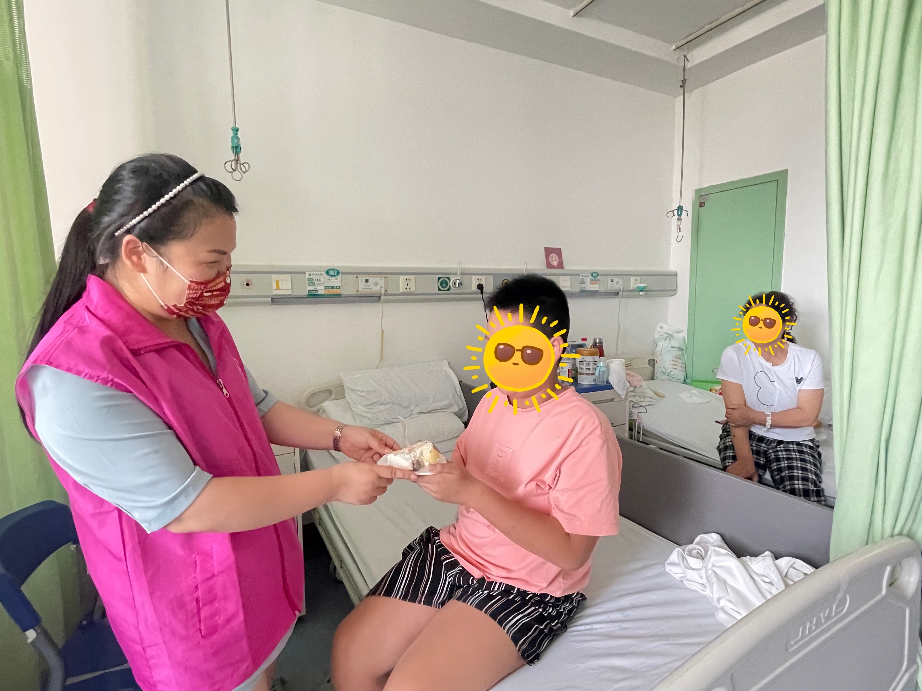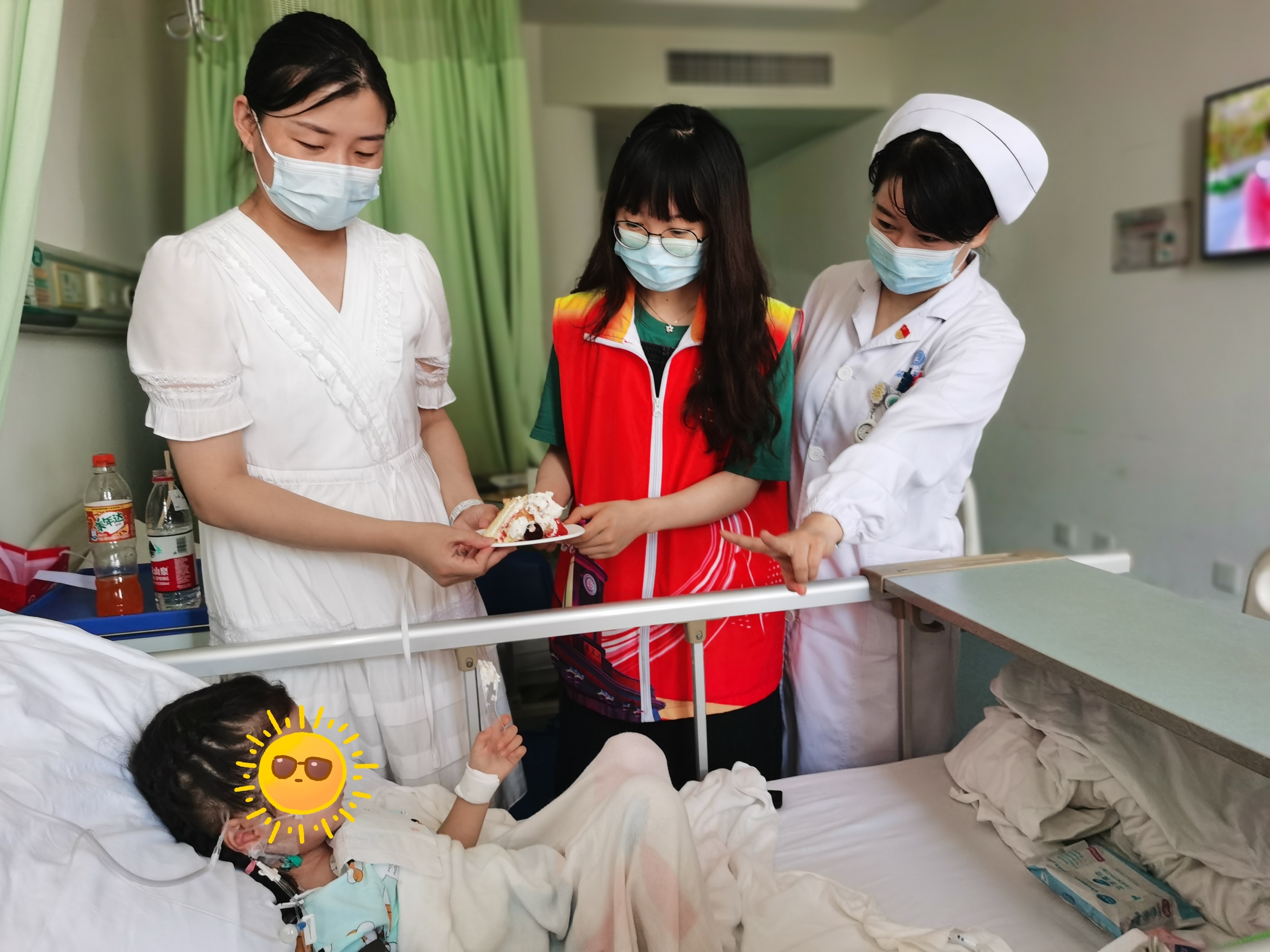 伴随着孩子们和志愿者的欢笑声,医护代表和志愿者们把切好的蛋糕送到了患儿们的病床前,将这份甜蜜更是分享到了整个病区。