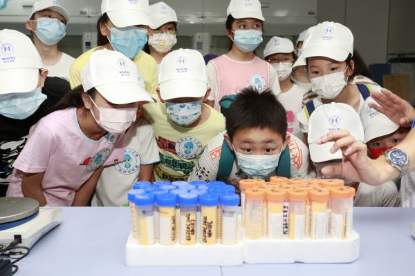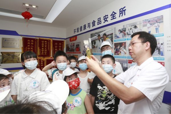 小记者们用好奇的眼光打量这一批食物检测样本。当天活动,市疾控中心环境健康与食品安全所(下简称环食所)副所长吴晓旻化身导游,带领20余名小朋友参观该所样品处理室、液相色谱-质谱联用实验室等多处极少对外开放参观的场所。并深入浅出地为小记者们介绍了该所检测食物中重金属、残留农药、添加剂,以及水质和空气质量的原理和方法。