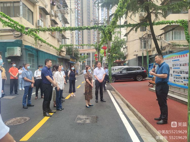 王鲨书记首先介绍了社区概况及老旧小区改造基本情况,随后重点讲解专业物业公司接管老旧小区的相关工作。王书记介绍,物业公司入驻江北小区后,并未第一时间收取物业费,而是为老旧小区的老百姓提供了免费的专业物业服务。对小区配套基础设施进行提档升级,对小区环境卫生进行整治,解决多起房屋水管堵塞问题和室内维修问题等,改善了居住环境,切实提高群众获得感,收获了群众赠送的多面锦旗。城市资源公司卢经理也现场介绍了物业相关工作,并表示将打破小区壁垒,为居民提供专心、细心、精心的服务。