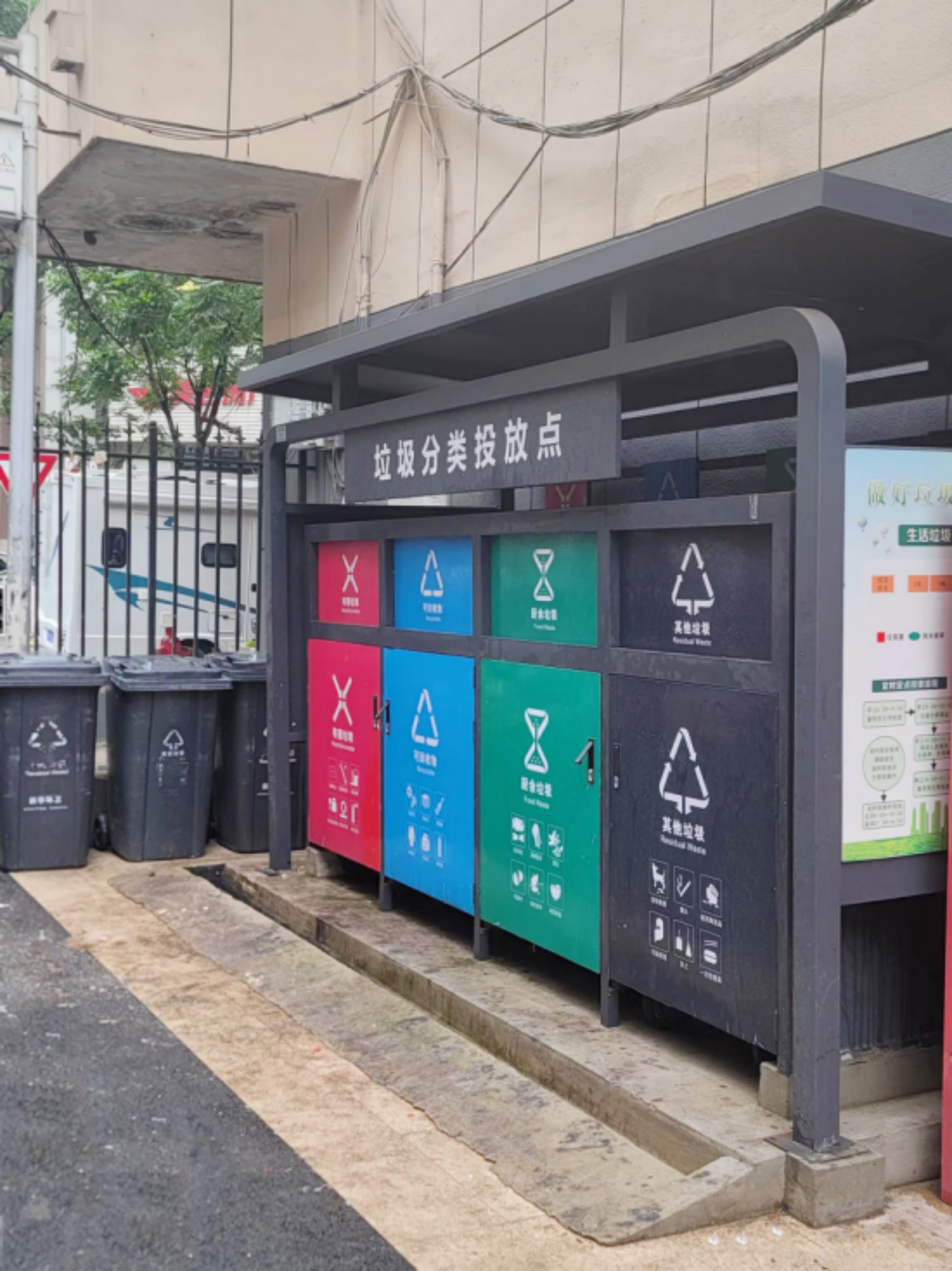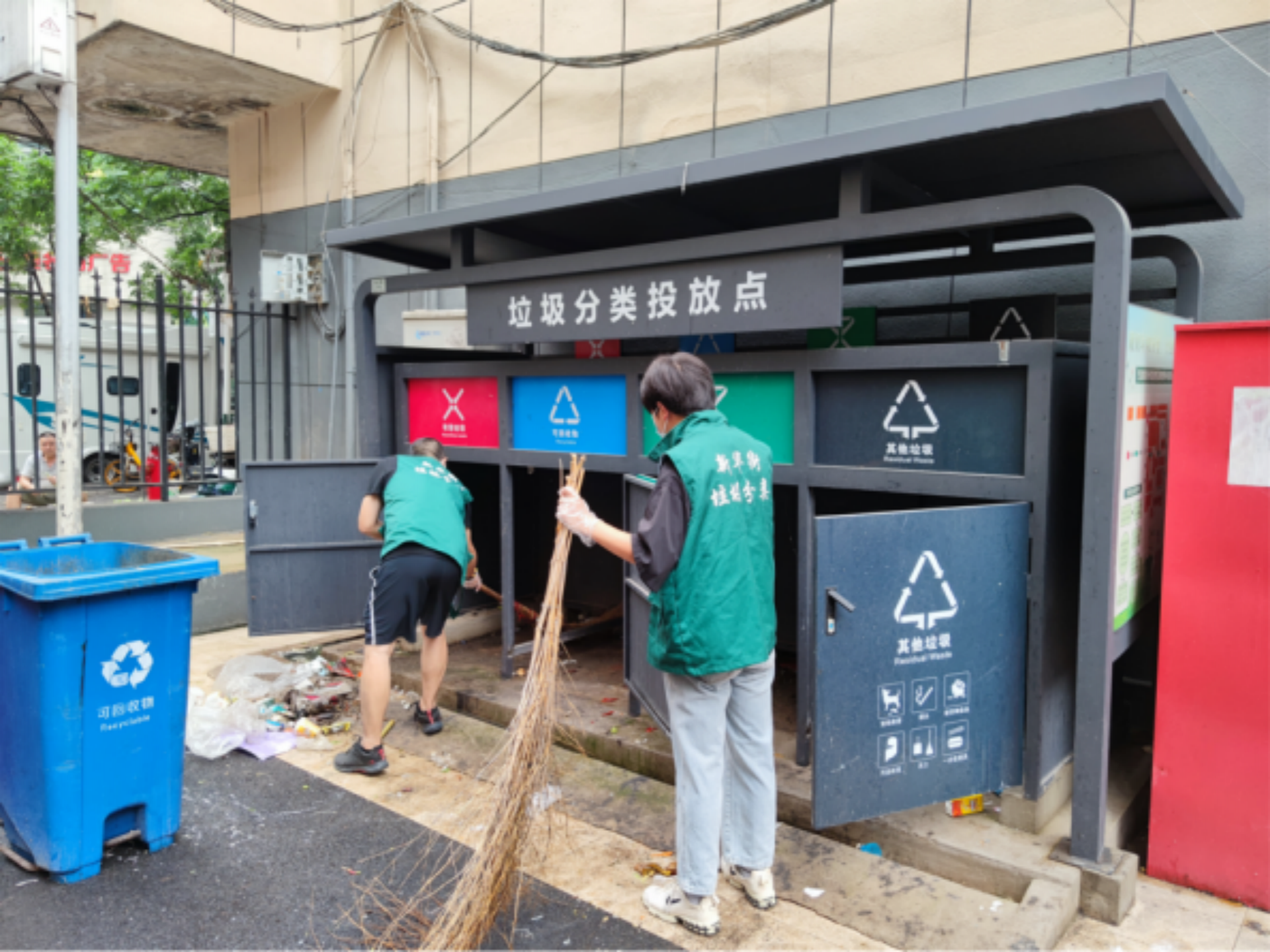 上午10点离开时,他们将垃圾分类点位的地认真地拖了两遍:“我们的垃圾投放点位干净整洁,居民就会跟着保持。”