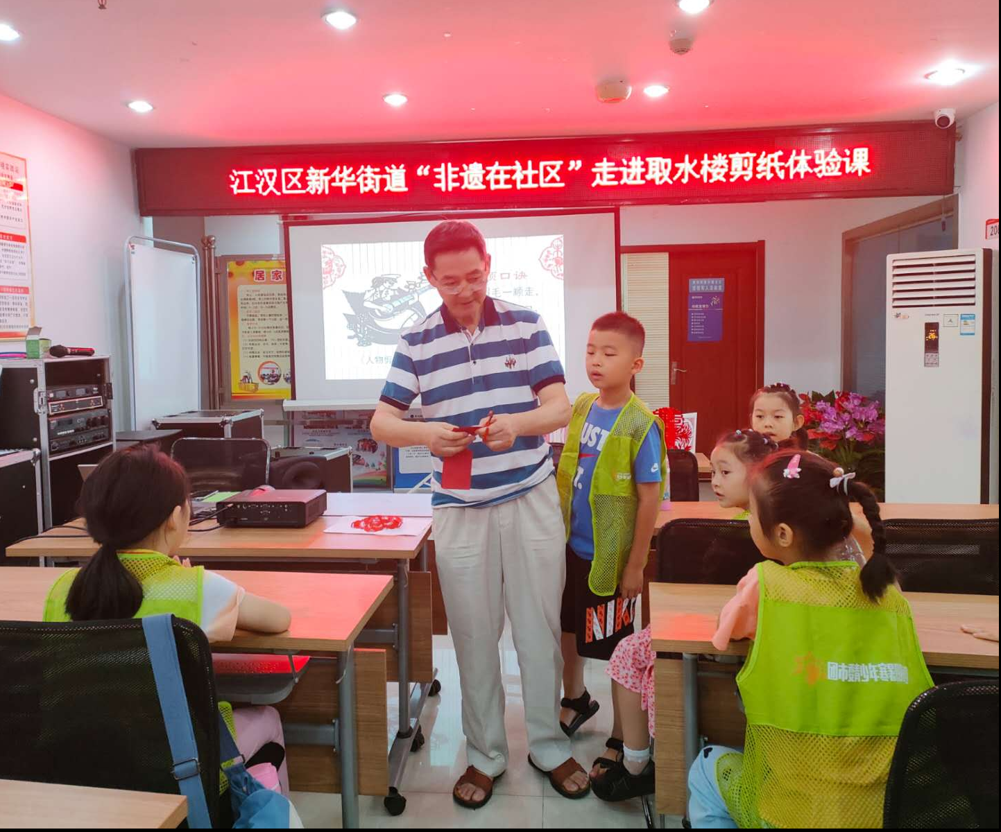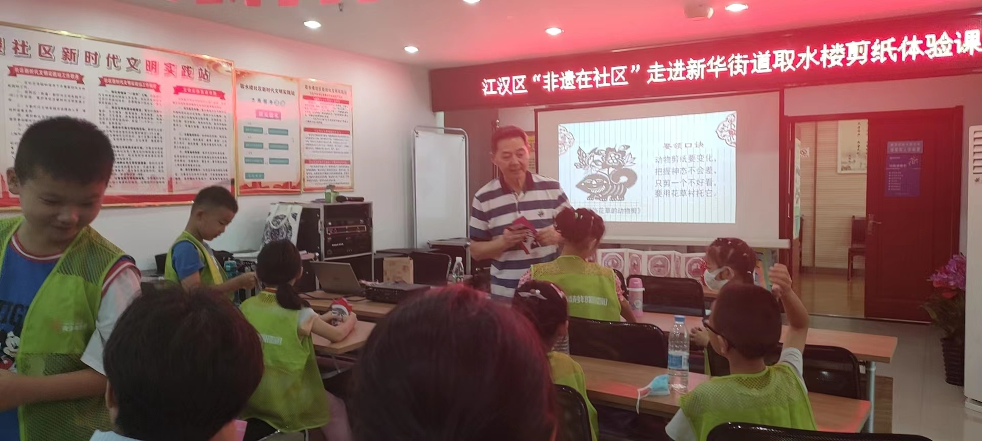 武汉剪纸源远流长,孕育于精彩绝伦的楚文化沃土,具有俊秀而优美的风格,既有北派粗犷写意、又有南派精雕细刻的神韵。7月26日,武汉市江汉区新华街道联合江汉非遗中心,特别邀请非遗剪纸传承人沈松柏,共同走进取水楼社区开展非遗剪纸体验课,一起解锁非遗之美。