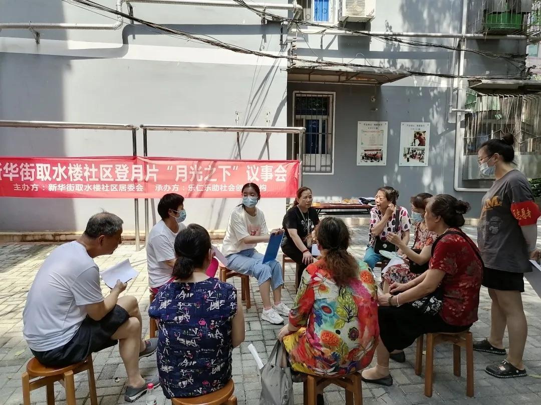 2019年改造完成后,如果小区还存在什么问题,有哪些方面还需要改进,居民们就会聚在院子里、树荫下进行商议,居民们给这个议事会取了一个很有诗意的名字——叫“月光之下”议事会。社区形成工作机制,固定一个月开一次会,如果情况特殊,还可以增加开会次数。小区里原有一面危墙,通过钢架加固后,居民发现不美观,讨论决定一起动手改造花墙。环境变好后,又发动各楼栋长认领绿植,开展绿植评比大赛,优胜者可以兑换登月通积分,享受在辖区内的免费理发、便民小修补等福利,越来越多的居民参与到环境守护中来,实现了小区治理向“自治共管” 的转变。