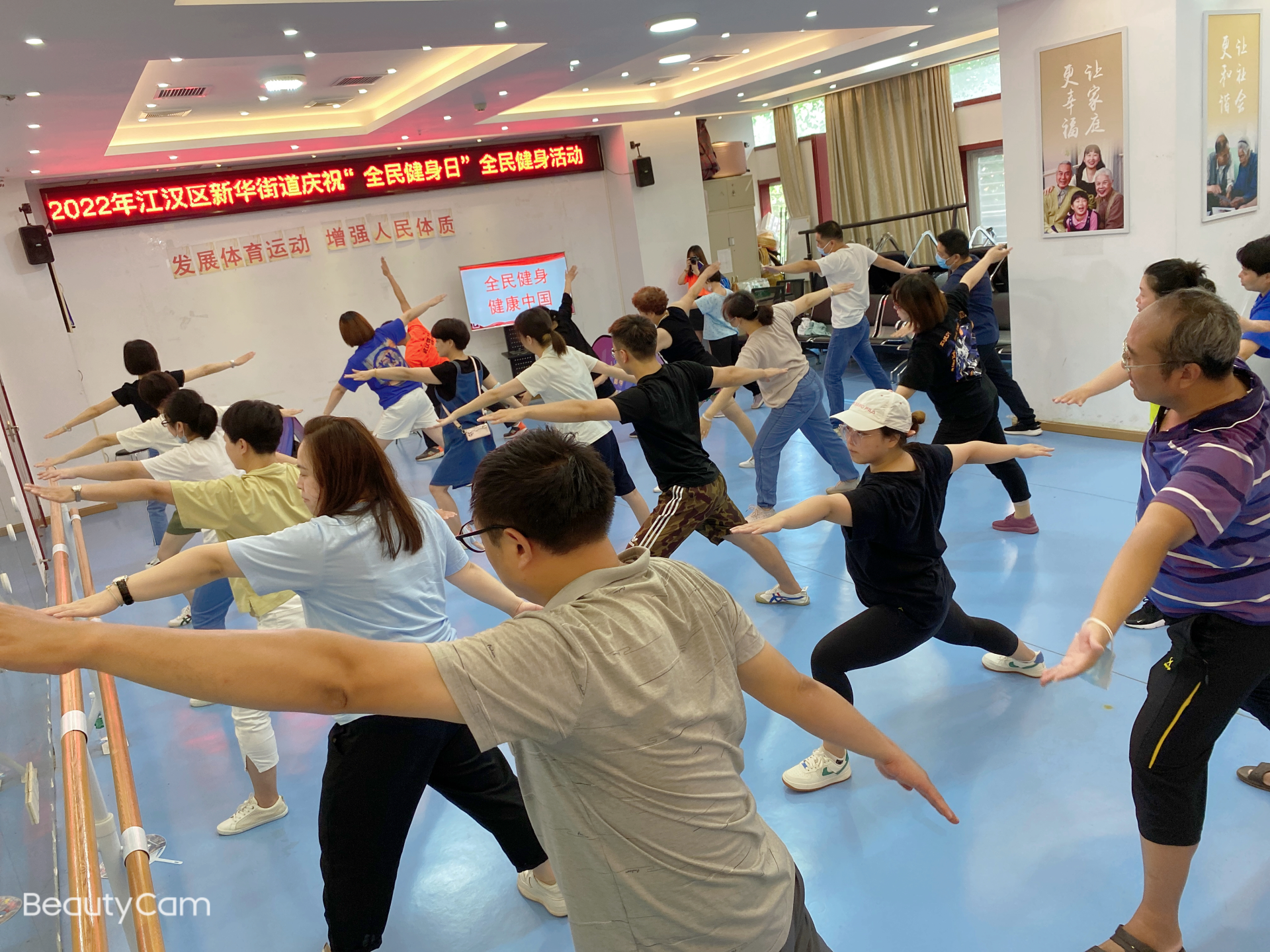 为积极响应全民健身活动,大力推广体育运动知识,更好服务单位职工、社区工作人员、辖区居民和体育运动爱好者,8月10日上午,武汉市江汉区新华街道开展“全民健身日”体育运动交流展示活动,武汉微马主任肖方雄安排了专业老师为辖区居民进行了公益体育健身操授课。