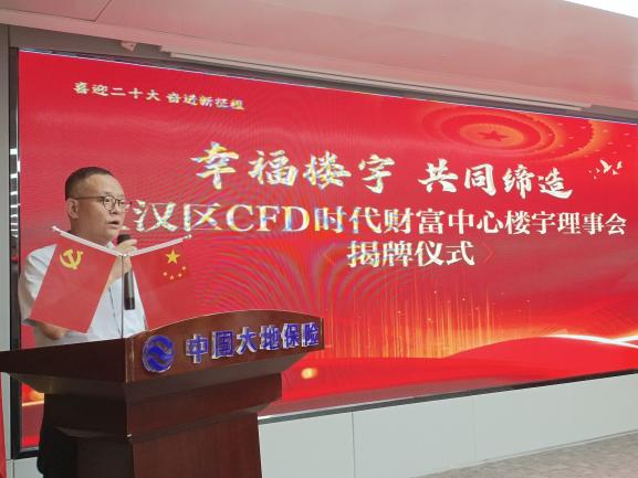 会上,街道党工委副书记向海燕现场宣读了CFD时代财富中心楼宇理事会成立批复,区领导及街道党工委书记滕宏等为理事会举办揭牌仪式并为理事会成员颁发聘书。街道工委副书记、办事处主任李红兵对理事会的成立表示祝贺,希望理事会成员能发挥应有作用,主动提高政治站位,用力搭建平台,优化营商环境,用心“软硬兼施”,对接精准服务,用情对接需求,深度共同缔造,以党建引领开启缔造楼宇新篇章。理事长、武汉红人实业集团股份有限公司总裁熊燕表示,理事会的成立为楼宇最大程度整合人员、阵地、资源、服务、活动搭建了平台,有利于促进楼宇企业协同发展,“未来,楼宇理事会将在街道党工委与楼宇综合党委的指导与支持下,汇聚楼宇力量,打造统战阵地,推动建立‘CFD幸福楼宇’,为江汉经济高质量发展贡献绵薄之力。”