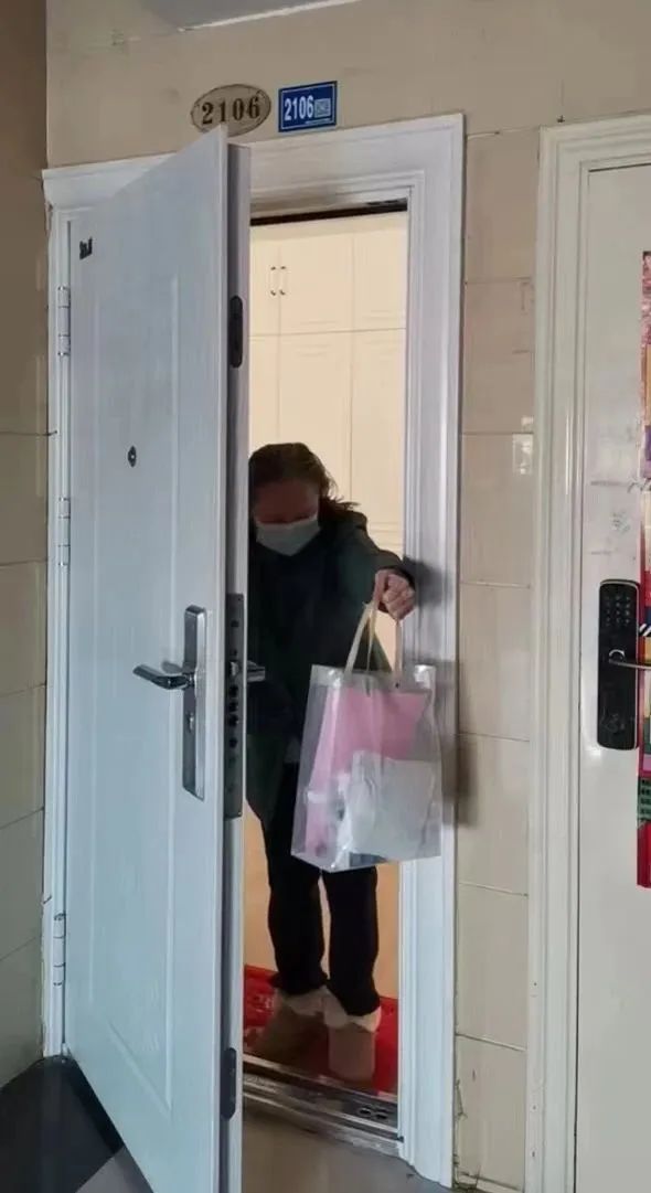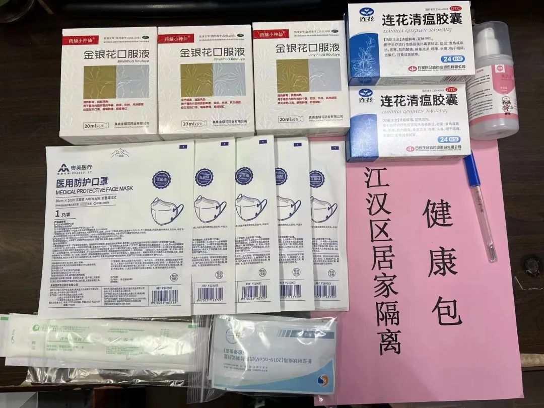 “刘爷爷,咱们区为辖区居民准备了防疫包,我给您放在门口。您待会拿一下。自己在家也要做好防护,有事您给我打电话。”12月15日下午,江汉区新华街道取水楼社区干事敲响了独居老人刘爷爷家的门,为他送上了一份“健康防疫包”。