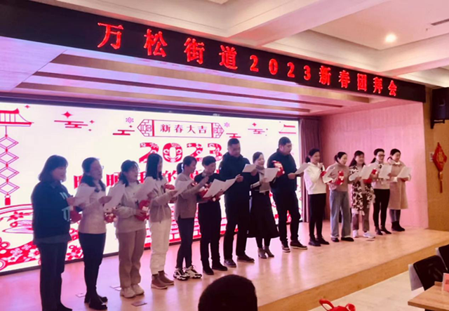 虎年辞旧岁,玉兔报春来。在农历兔年春节即将到来之际,万松街道于1月18日上午10-11时,在街道办事处二楼219活动室隆重举办2023年兔年迎新春团拜会,机关、社区干部职工欢聚一堂、载歌载舞,在喜庆祥和的节日氛围中迎接新一年的到来。