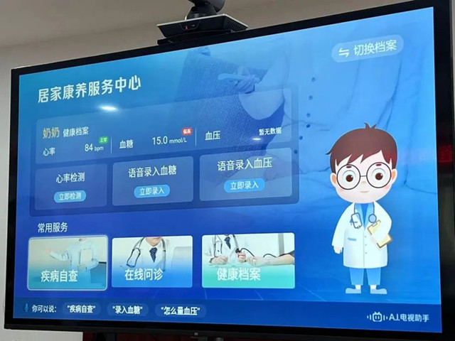 座谈中,省电信数字生活运营中心联合科大讯飞等厂家展示了血氧语音遥控器、智能血压计等数字产品,做了iptv语音遥控和小翼管家联动的精彩演示。其中血氧语音遥控器能够将疾病自查的AI能力赋能到家庭电视屏上,利用AI心率宝与电视大屏进行语音问答互动,同时提供5247种相关病种的疾病百科,包含病因、常用药品、预防、预后及日常护理等多方面的建议与指导,居民在家即可进行疾病自查和在线问诊,极大解决老年医患就医问药难题。