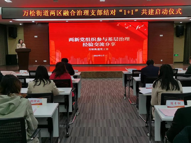 为进一步压实“两新”组织党组织抓党建工作责任,强化党建引领双向赋能,及时总结社企联建的阶段工作经验,推动“两区”融合治理工作落实落细,持续提升基层党建工作水平。2月21日,江汉区万松街道组织召开辖区“两新”组织党组织书记抓基层党建工作述职评议会暨“1+1”支部结对仪式。40余家“两新”组织党组织负责人参会。