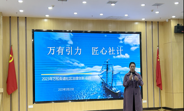 3月22日,武汉市江汉区万松街道“万有引力 匠心社计”2023年党建引领基层创新治理项目启动会上,“云天社区平安合伙人”、“妙墩社区‘志’来熟”等各社区重点项目推介引得台下阵阵掌声。