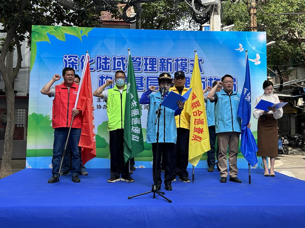 人因河湖美而乐,城因河湖美而兴。为进一步推进河湖长制陆域试点工作,5月9日,民意街道开展“深化陆域管理新模式,构建基层治理新格局”主题宣传活动。市水务局河湖长制办公室主任昝玉红,区水务和湖泊局党组书记、局长胡卫斌,民意街道党工委书记苏瑾、办事处主任王帅、人武部部长熊星华,团区委、友谊路中学、民意街道相关科室工作人员、社区河湖长参与本次活动。一是综合施策,水岸共治。民意街道办事处主任王帅总结了陆域管理推行工作情况。区水务和湖泊局党组书记、局长胡卫斌为活动致辞,领导指出河湖水环境好坏“表象在水,根源在岸”,江汉区将创新推进水岸共治、上下共管流域河湖长制工作机制。市水务局河湖长制办公室主任昝玉红为授旗仪式发表重要讲话,昝主任对民意街道综合施策的创新工作方法表示肯定,并倡导推广水岸同治的经验做法,随后针对河湖长制工作提出三点建议,第一以问题为导向认真履职、第二树立大局观念、第三树立文明新风,将爱水节水等理念融入到我们的日常生活中,与共同缔造、文明创建有机结合起来,一起打造幸福美丽家园。二是宣教一体,全民参与。活动现场由四支队伍正式组成民意街道陆域管理工作队,一是水资源保护义务宣讲队,二是陆域管理联合巡查队,三是陆域管理志愿巡逻队,四是陆域管理工作服务队,与会领导为队伍授旗后由志愿队伍代表宣誓。现场除了播放江汉区河湖长制宣传片外,为了向居民更好科普相关污水治理知识,还设置了参观“保护大长江,珍惜水资源”主题绘画展环节。三是从源做起,执法监管。为更好地实现水域岸线空间保护,落实水环境执法工作,此次活动还设置了《排水执法街道赋权事项理解与实践》培训讲座,由江汉区各街道综合执法中心代表参与,本次培训旨在强化责任担当意识,以更实的举措全面推动河湖长制工作由“有名有责”向“有能有效”转变,努力打造水清人和的生态宜居环境。