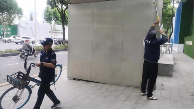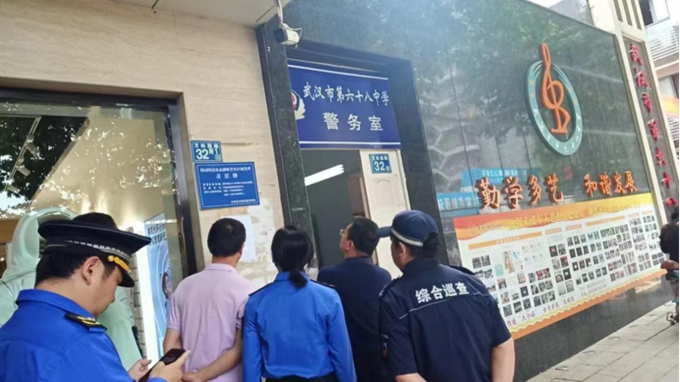 街道综合执法中心对辖区内高考考点——武汉市第六十八中学周边开展市容环境专项整治。