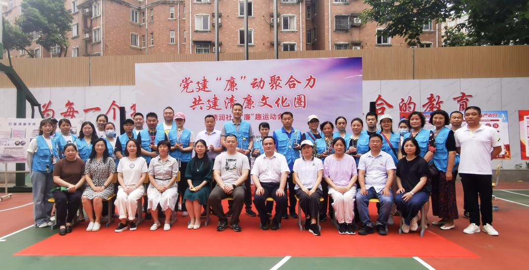 为做好党风廉政文化宣传工作,拓宽宣传渠道,充分发挥各类阵地优势,将党风廉政建设融入基层文艺和百姓生活,6月2日下午,江汉区常青街道德润社区党委联合武汉市科学技术局、武汉市地方金融工作局、武汉金融街管理委员会、武汉市第七十一中学、艾尔眼科、武汉航侧实业有限公司等9家下沉单位及共建单位举办常青街道首届“廉”趣运动会。江汉区监委委员、区纪委审理室主任周敏,常青街道工委副书记、办事处主任操峰,常青街道纪工委书记杨玲等多位领导出席该活动。