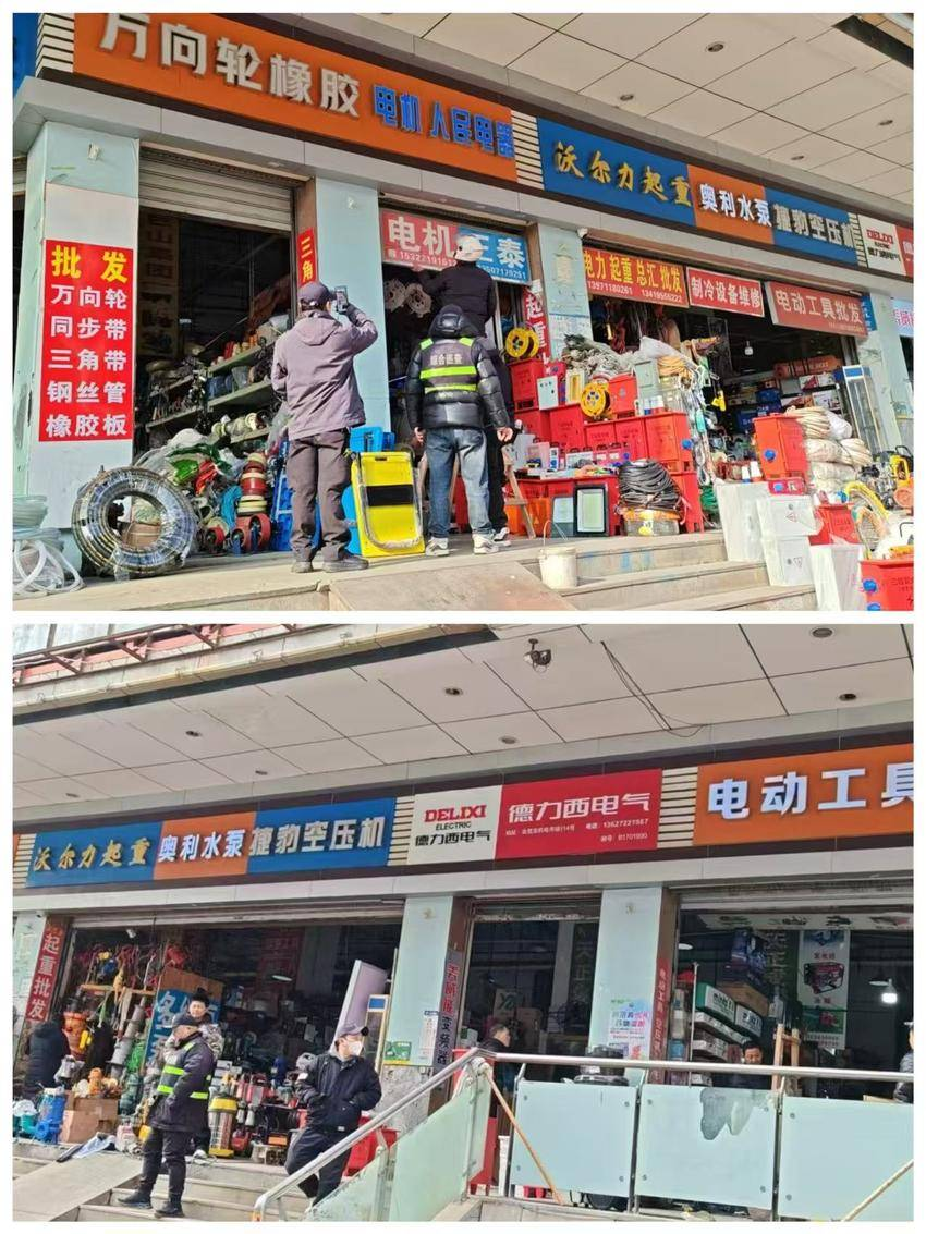 为落实江汉区以城市更新带动违法广告整治工作要求,近日,江汉区民意街道集中力量,依法组织开展“一店二招”违规广告招牌拆除专项行动。此次整治主要针对沿街商铺存在的多设招牌、广告杂乱等问题。行动前,街道综合执法中心联合社区工作人员进行全面排查,逐户上门向商户宣讲城市管理相关规定与市容标准,细致解释“一店一招”规范要求,并阐明违规广告可能带来的安全隐患。通过耐心沟通和引导,多数商户表示理解并积极配合整改。拆除过程中,街道安排专业施工队伍,严格落实安全防护措施,确保整治工作平稳有序推进。截至目前,已成功完成2处重点点位的违规广告拆除,累计清理违规招牌10余块,街道视觉空间得到有效净化。