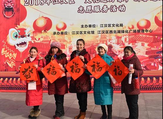 1月31日下午,由区文化局主办,区文化馆、西北湖绿化广场承办的“喜迎新时代,共筑中国梦”——学习宣传贯彻党的十九大精神暨2018年江汉区“文化进万家,新春送万福”志愿服务活动在西北湖绿化广场隆重举行。50名书法剪纸艺术家现场挥毫泼墨、即兴创作,年味十足!