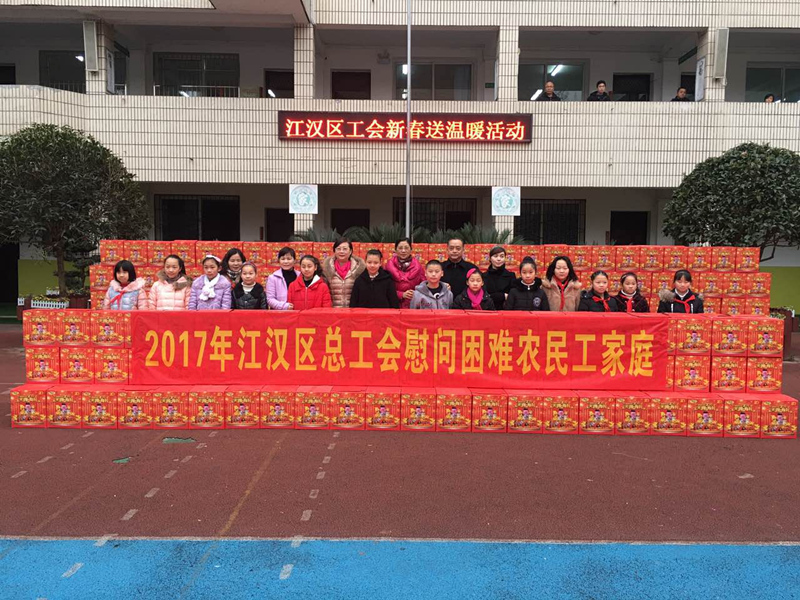 1月18日上午,江汉区总工会党组书记、常务副主席方华辉等一行4人,来到生源94%以上都来自进城务工家庭的福建街小学,对该校288户困难农民工家庭子女进行了慰问。