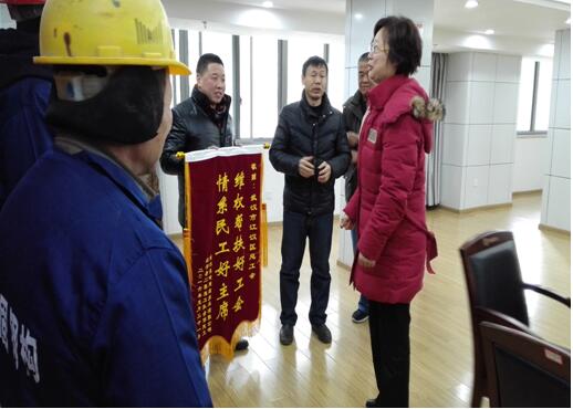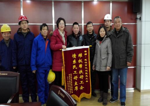 元月25日,武汉市长峰建筑技术有限公司红安县二程施工队代表一行6人满含热泪送锦旗到区总工会,感谢区总工会领导协助他们解决了追讨无望的125万农民工工资。