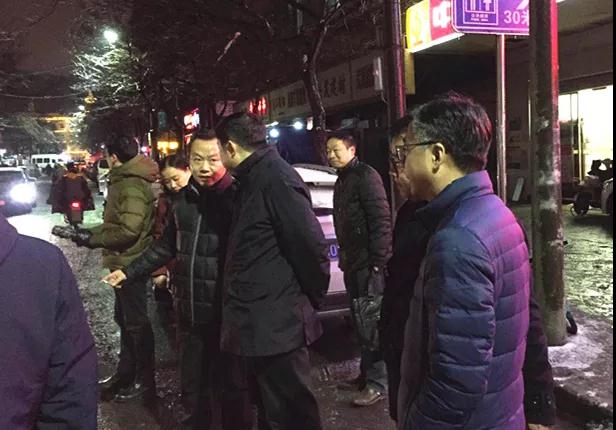 1月25日晚,区长李湛到前进街检查融雪防冻工作,走访慰问空巢独居老人。