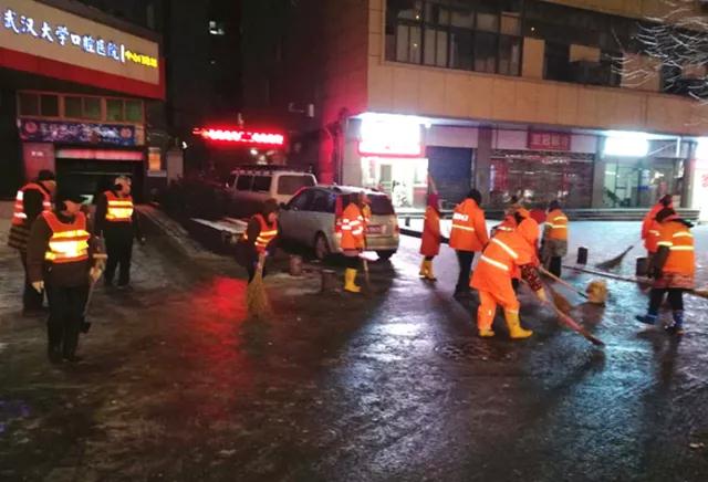 近日,武汉遭遇雨雪冰冻天气,江汉区各部门、各街道和社区积极行动,多措并举,提前做好融雪防冻准备工作,确保了居民生产生活安全有序。