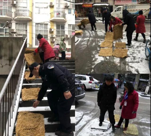 积极组织社区基层力量、发动党组织战斗堡垒作用,迅速行动起来。街道、社区紧急召开应对极端天气组织部署会,发动社区工作人员、志愿者,及时清扫辖区内楼道及路面上的积雪,在易结冰路段撒上融雪盐,铺设防滑麻袋、草垫。
